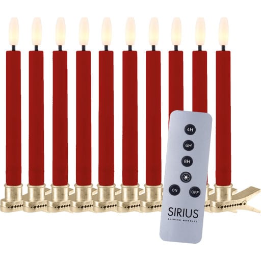 Røde LED juletræslys med realistiske flammer – 10-pak Skab en tryg og stemningsfuld jul med Sille LED juletræslys fra Sirius. De elegante lys kombinerer den klassiske juleæstetik med moderne LED-teknologi, så du får en hyggelig og sikker løsning – perfe